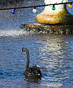 This long water feature is full of waterbird life, including the Dawlish Black Swans, floating gracefully along the clear water around fountains and under a collection of lights that give an amazing display late at night when reflected off the shimmering river.